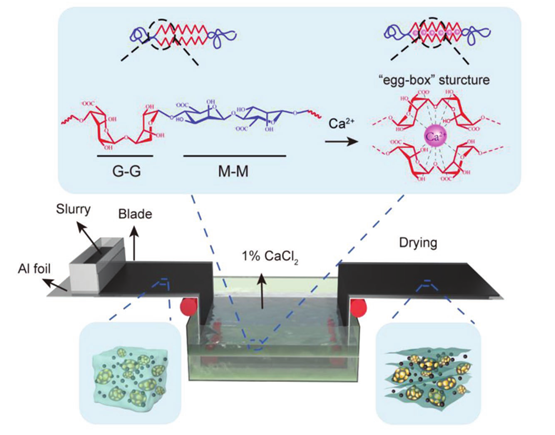 锂-硫(Li-S)电池是一种很有前景的储能材料,但由于多硫化物(PS)的严重穿梭效应,锂-硫电池的容量和循环性能都面临巨大挑战。近日,我院在层析膜电极设计及其在锂硫电池应用研究中取得重大进展。研究人员将广泛应用于蛋白质选择性吸附的膜首次应用于电池领域,利用了海藻酸钠的凝胶性和其对多硫化物的亲和性在电极的内部原位构建了亲和膜来抑制 Li-S 电池中的多硫化物,降低了PS的渗透性。